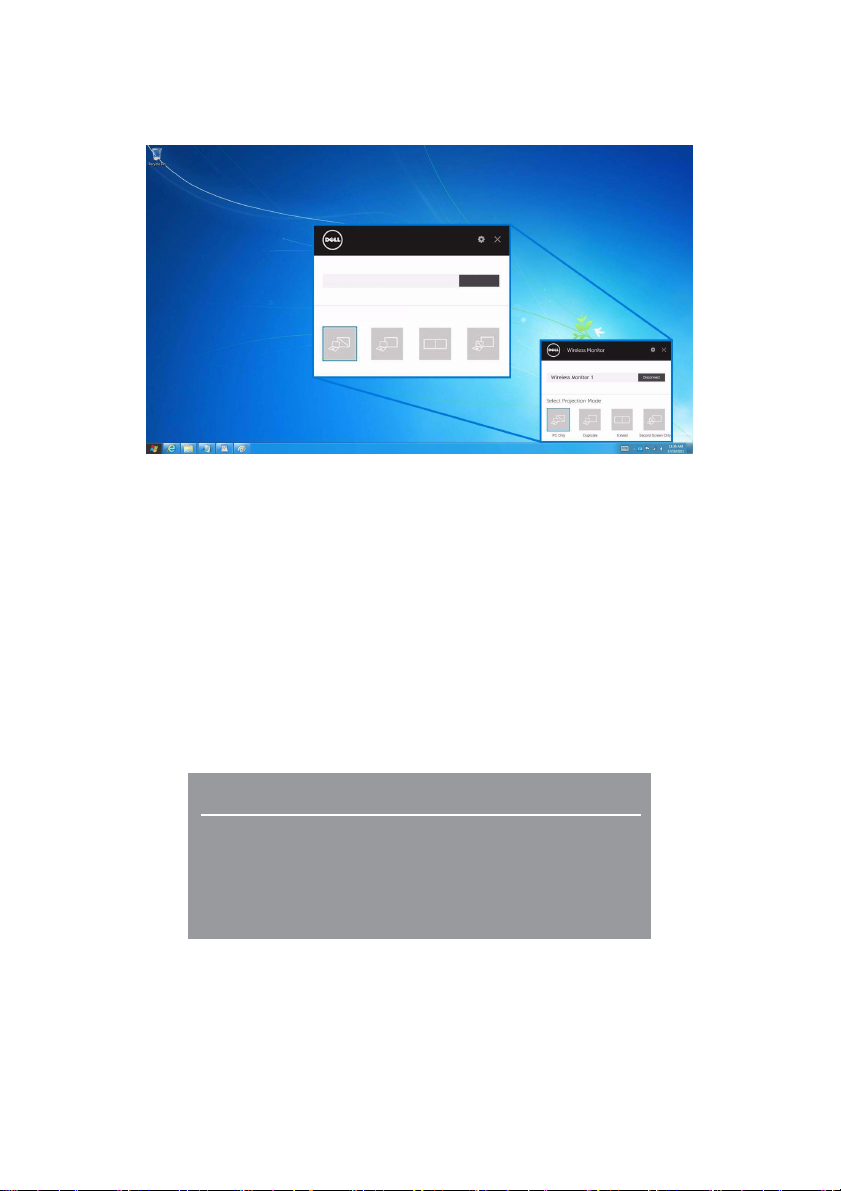 接的显示器上显示屏幕图像。 当您将笔记本计算机、平板计算机和手机连接到 Dell 无线接收