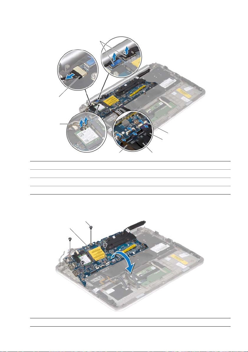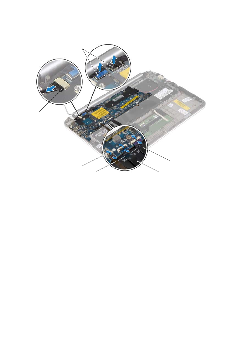 8Collegare i cavi dello schermo alla scheda di sistema.