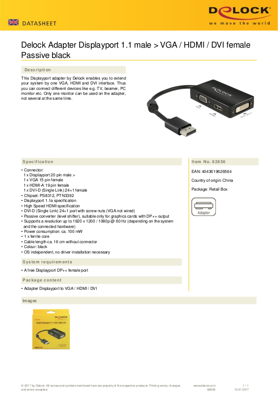 © 2017 by Delock. All names and symbols mentioned here are property of the respective producer. Printing errors, changes
