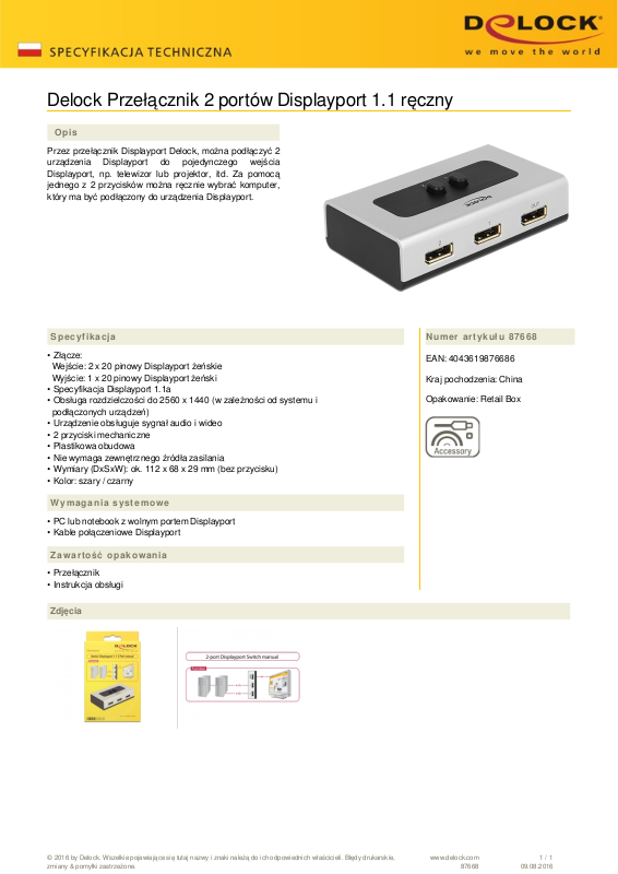 © 2016 by Delock. Wszelkie pojawiające się tutaj nazwy i znaki należą do ich odpowiednich właścicieli. Błędy drukarskie,