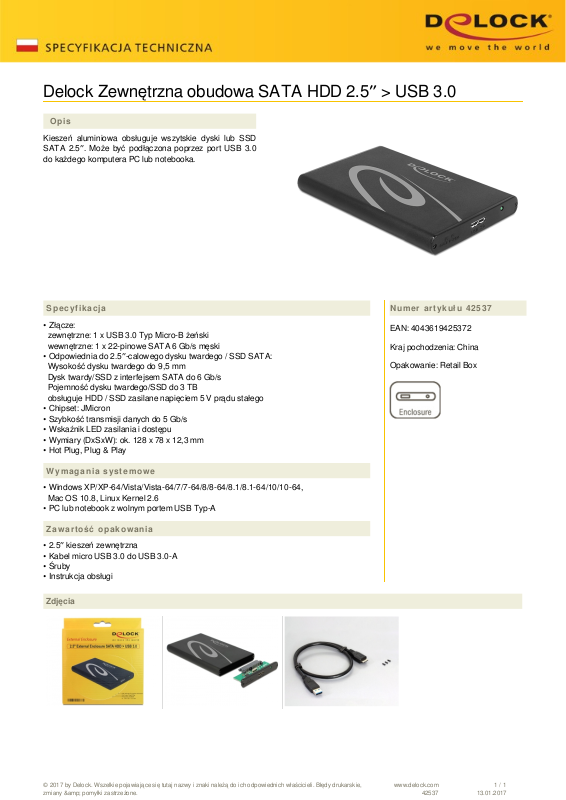 © 2017 by Delock. Wszelkie pojawiające się tutaj nazwy i znaki należą do ich odpowiednich właścicieli. Błędy drukarskie,
