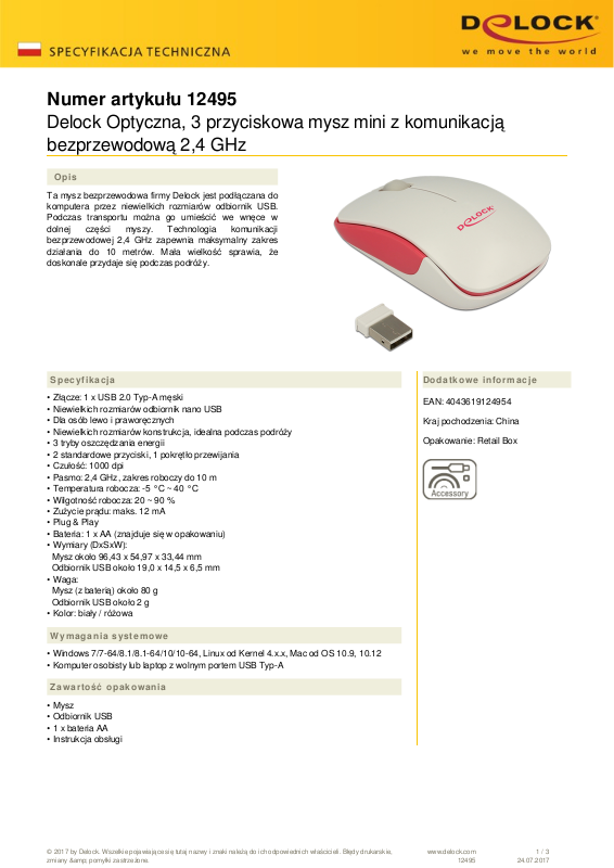 Ta mysz bezprzewodowa firmy Delock jest podłączana do