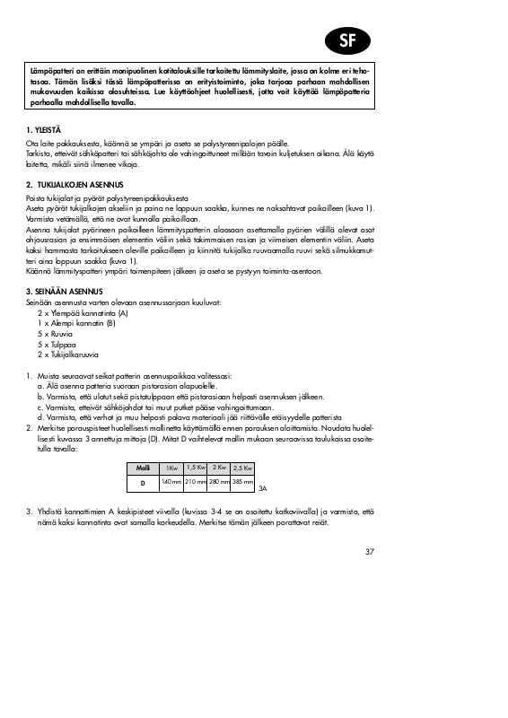TÄRKEÄÄ: Älä koskaan peitä lämpöpatteria millään tavoin toiminnan aikana, sillä tämä saattaisi nostaa sen lämpötilan vaarallisen korkeaksi.