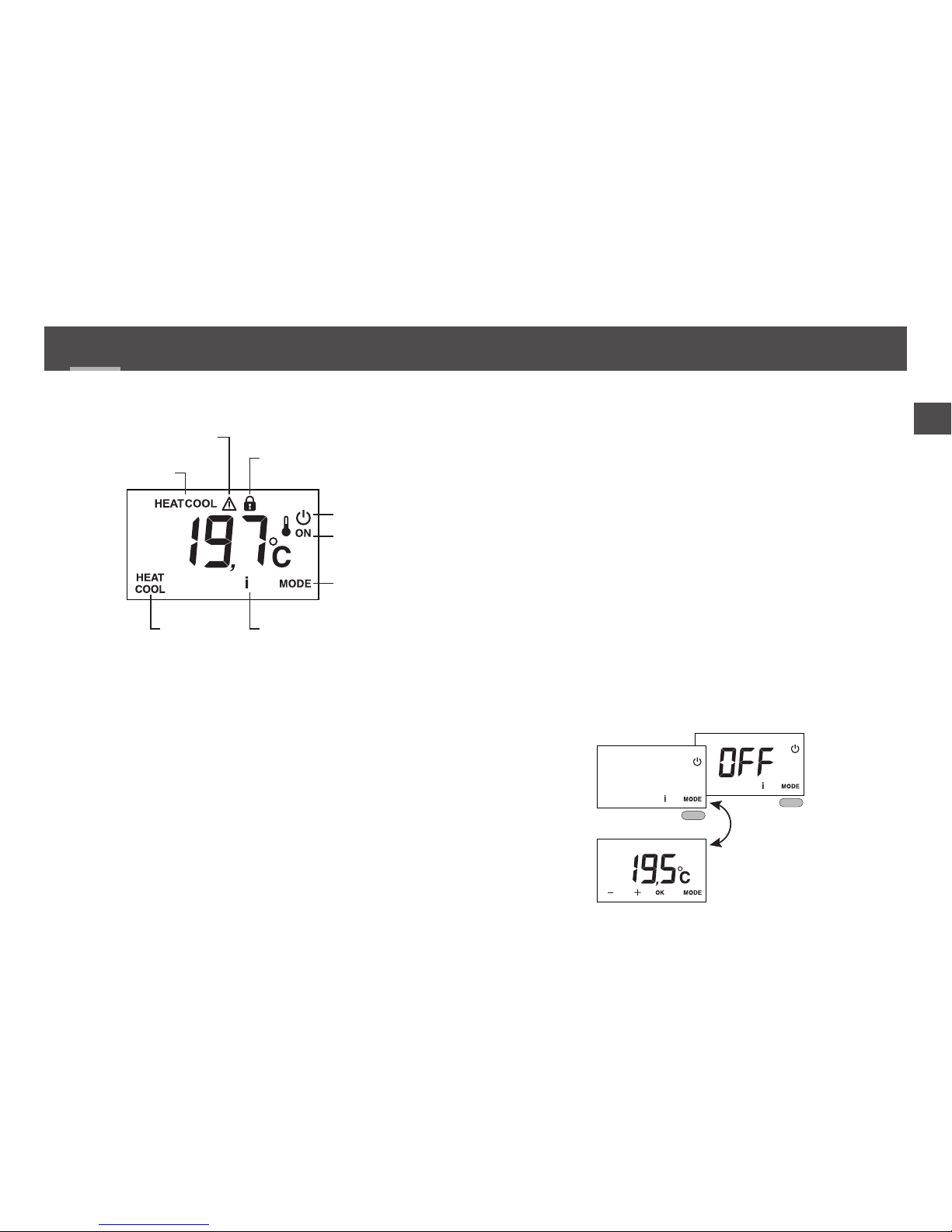 HEAT/COOL button: appears in OFF mode, if the