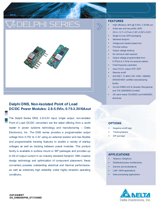 The Delphi Series DNS, 2.8-5.5V input, single output, non-isolated