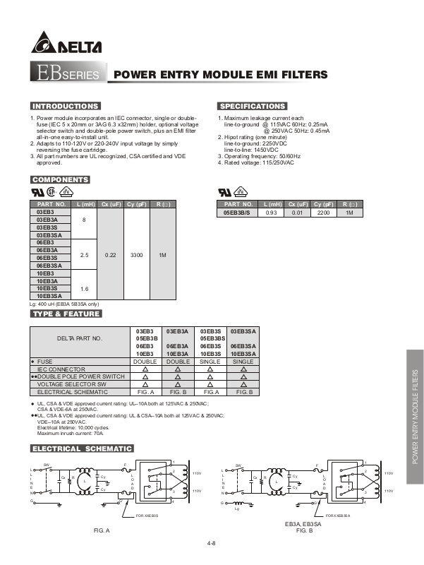 UL, CSA & VDE approved current rating: UL 10A both at 125VAC & 250VAC;