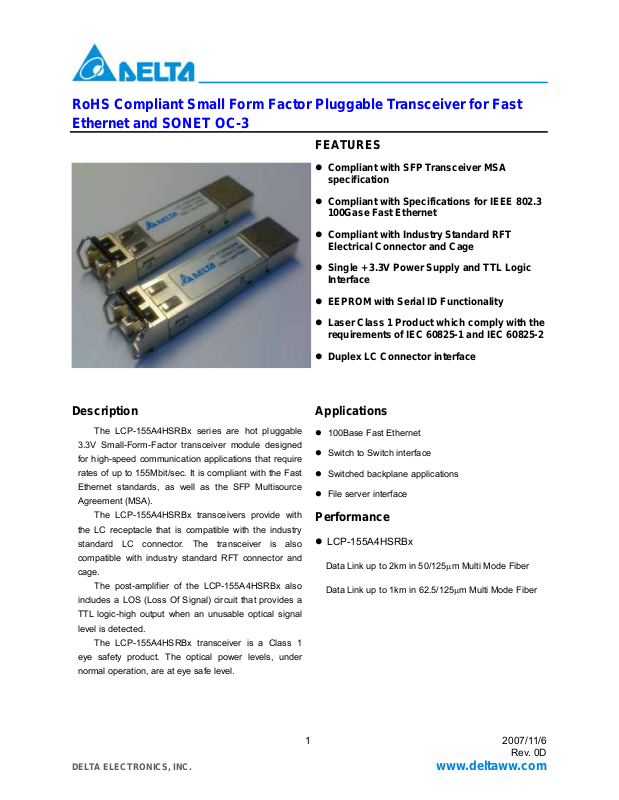RoHS Compliant Small Form Factor Pluggable Transceiver for Fast
