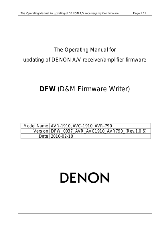 Denon DFW V0037, AVC-1910, AVR-790 Service Manual