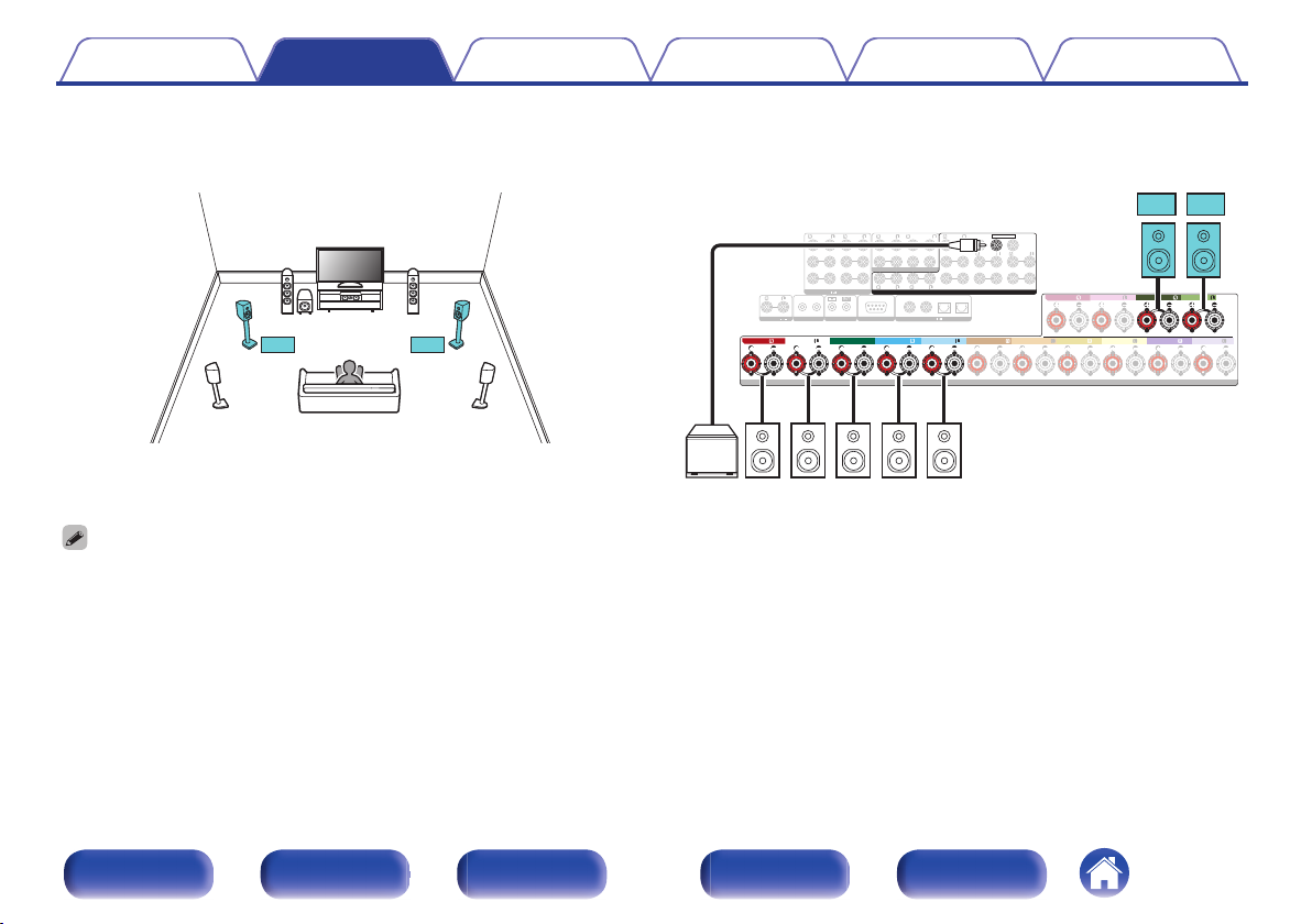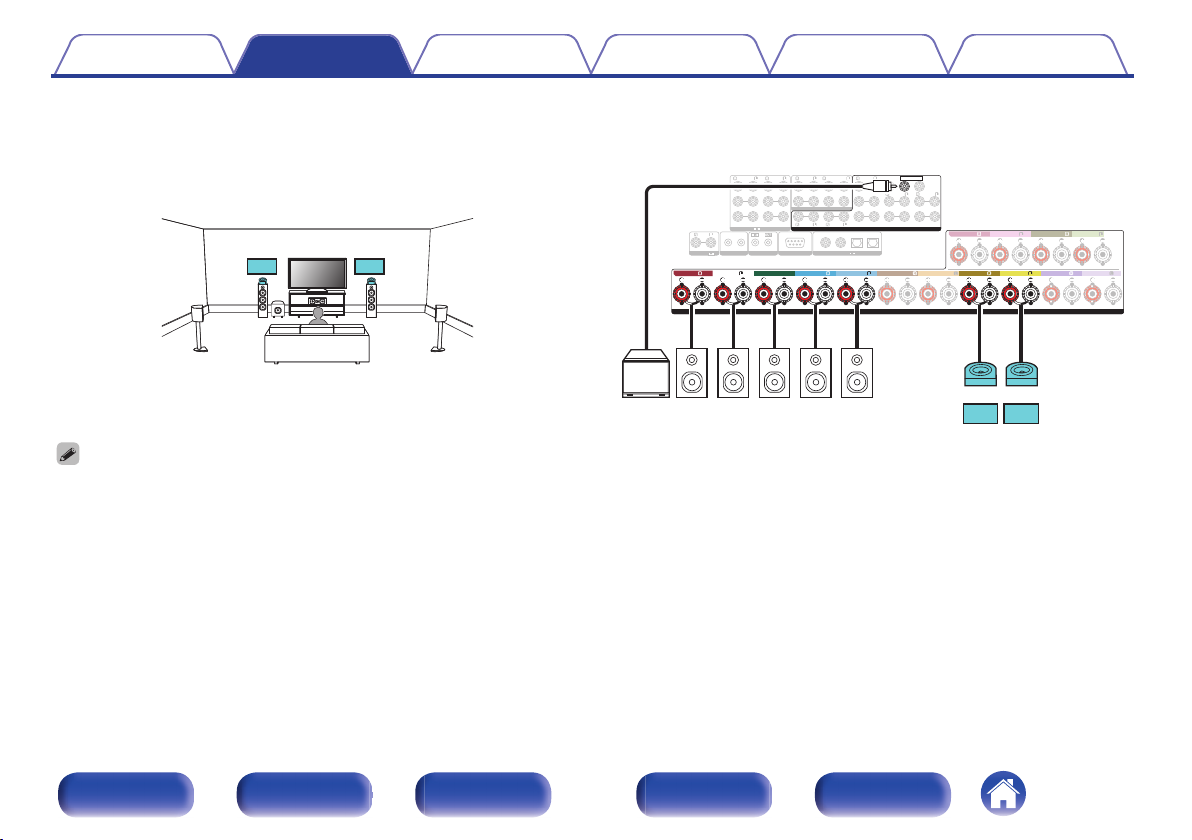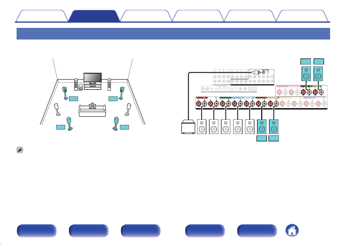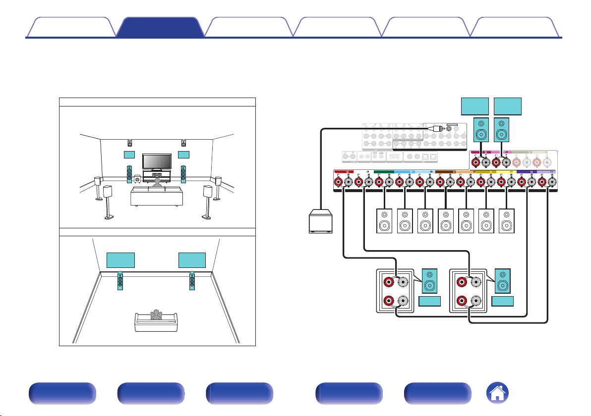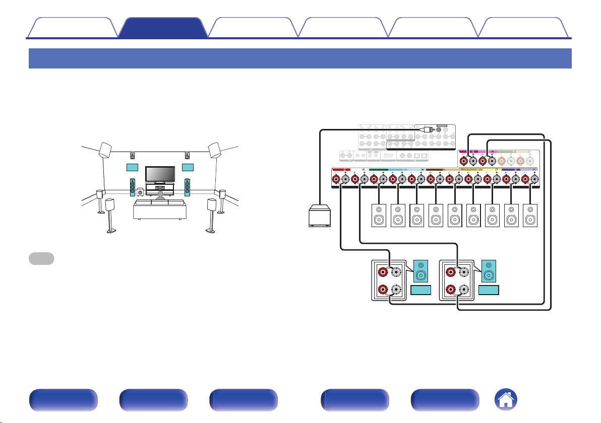 连接 11.1 声道扬声器:第二对前置扬声器