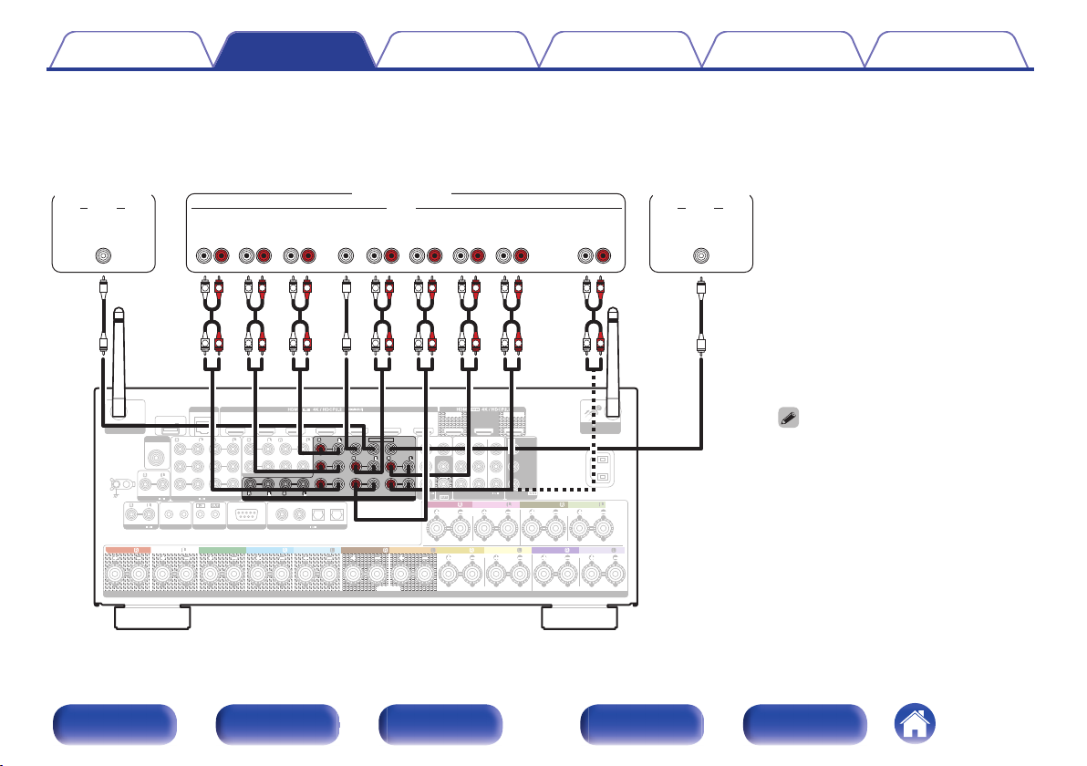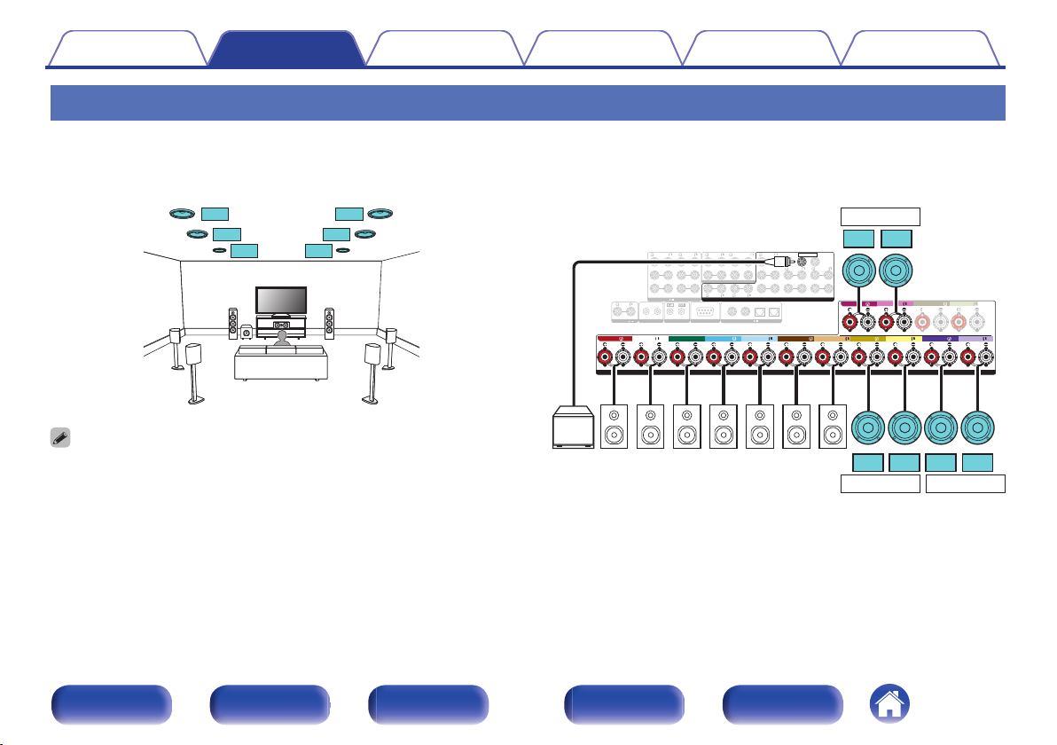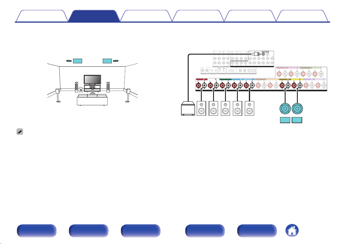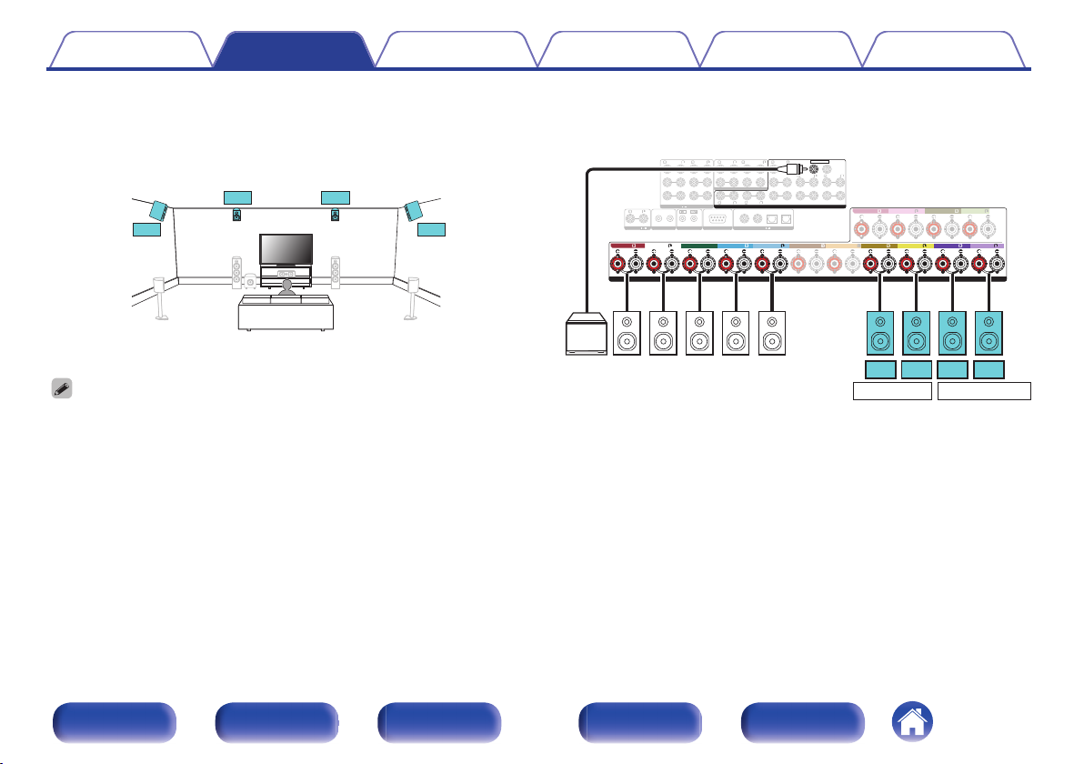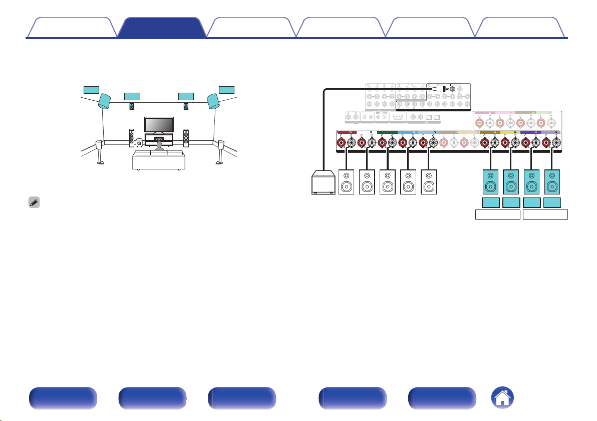 连接 11.1 声道扬声器:第二对前置扬声器
