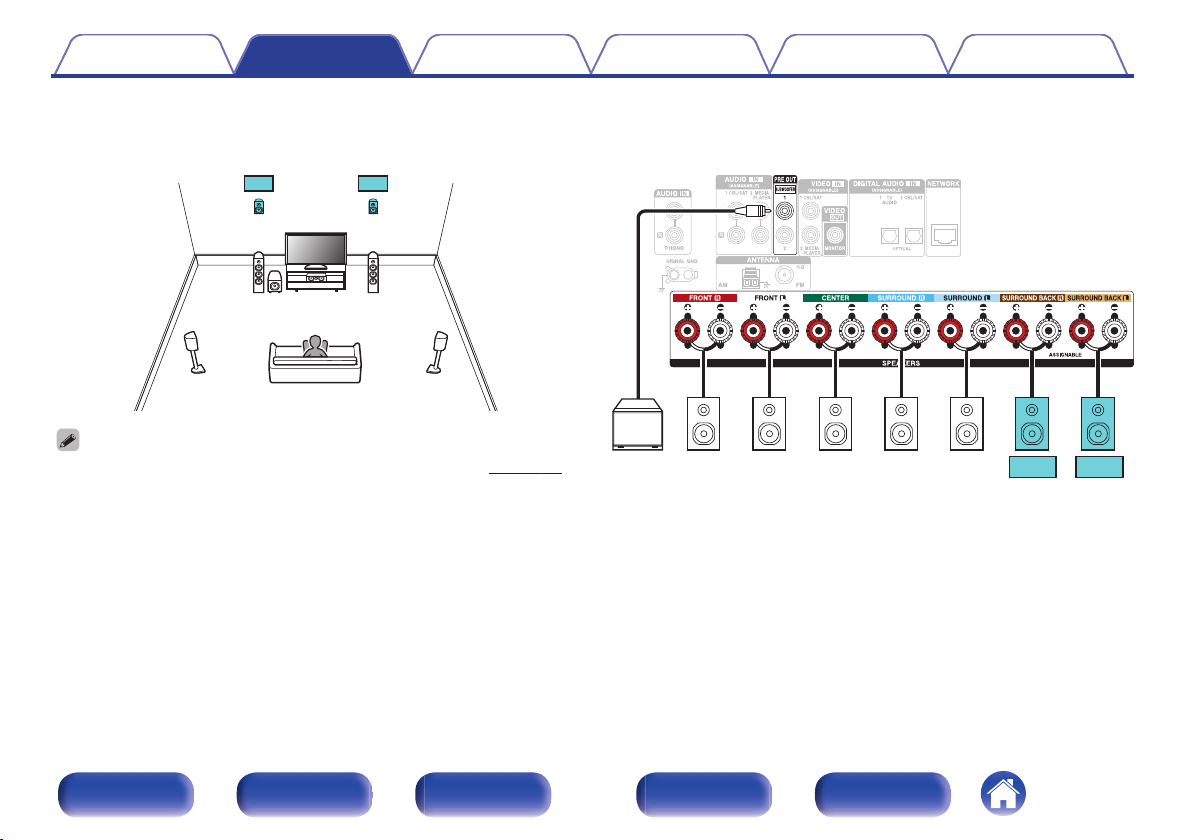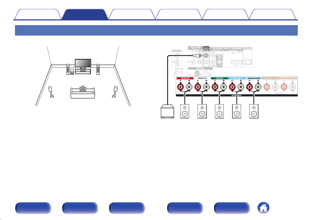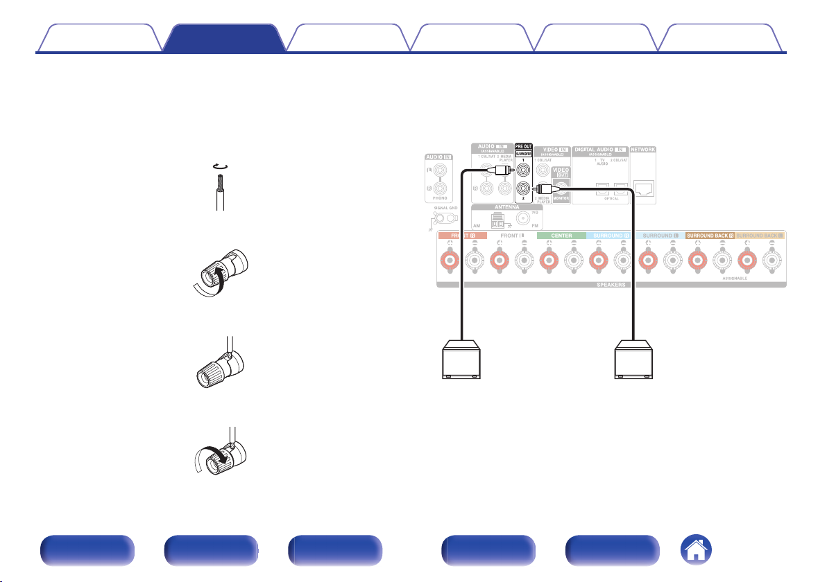 连接 5.1 声道扬声器:前置扬声器的双功放连接