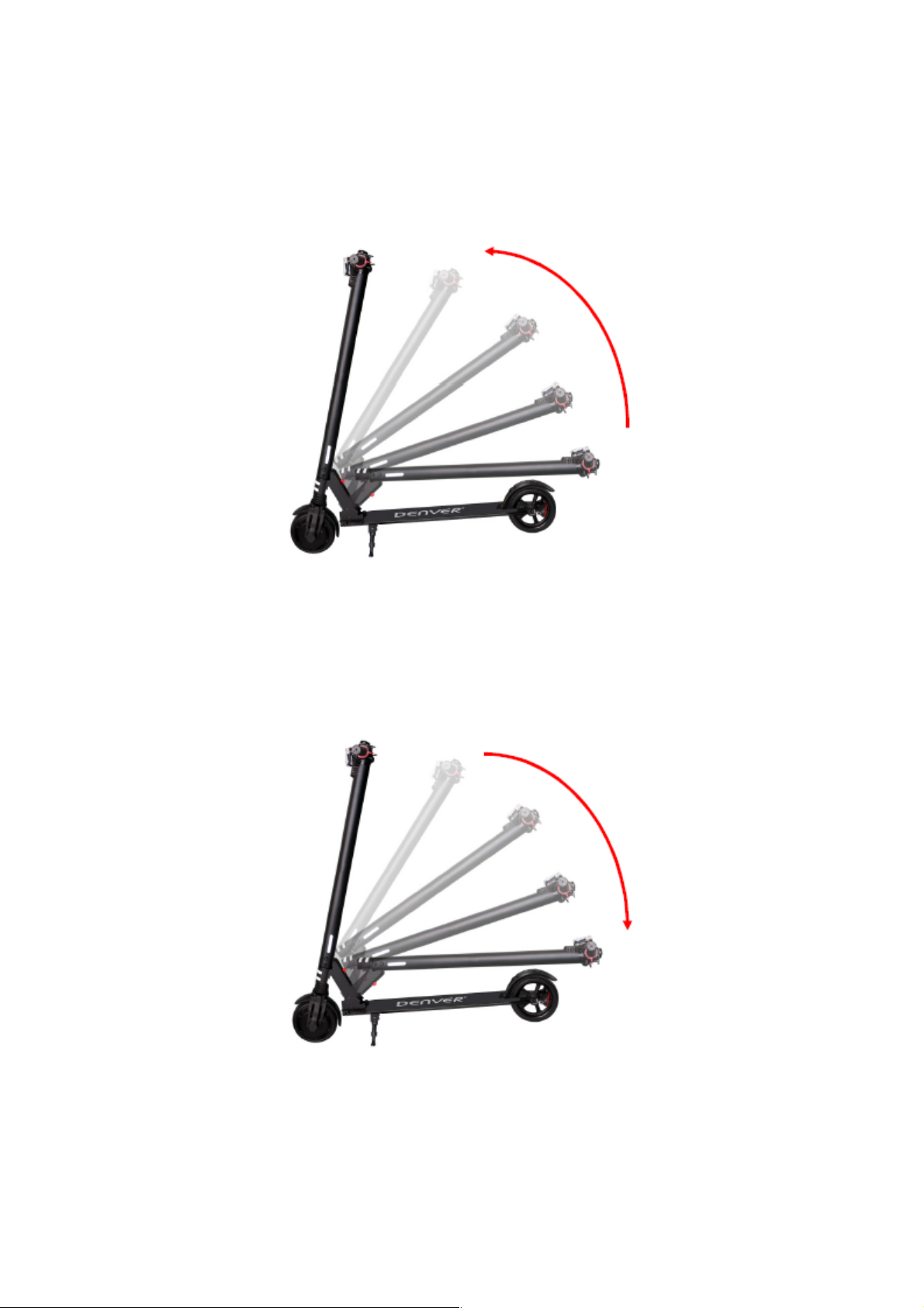 2) Tryck stången på den elektriska scootern nedåt (Obs: gränsläget måste rättas till.)