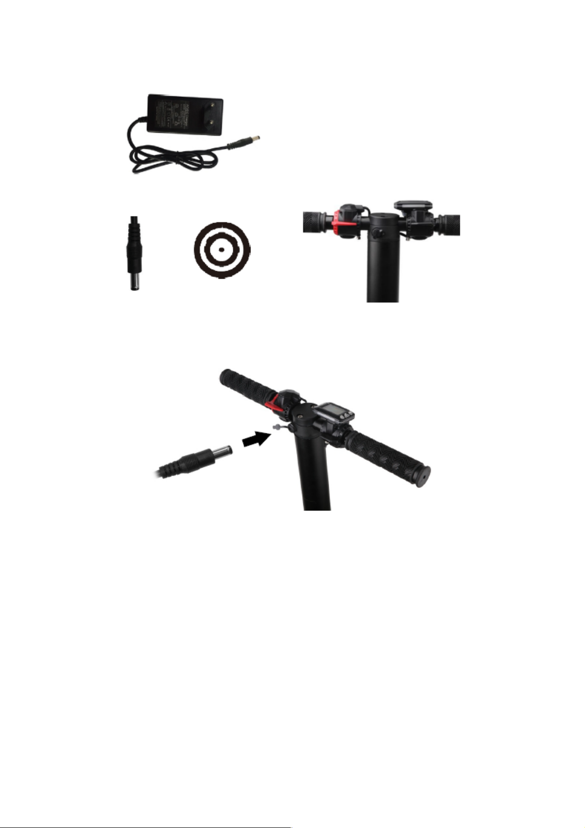 •Ta bara av kåpan när du laddar den elektriska scootern!