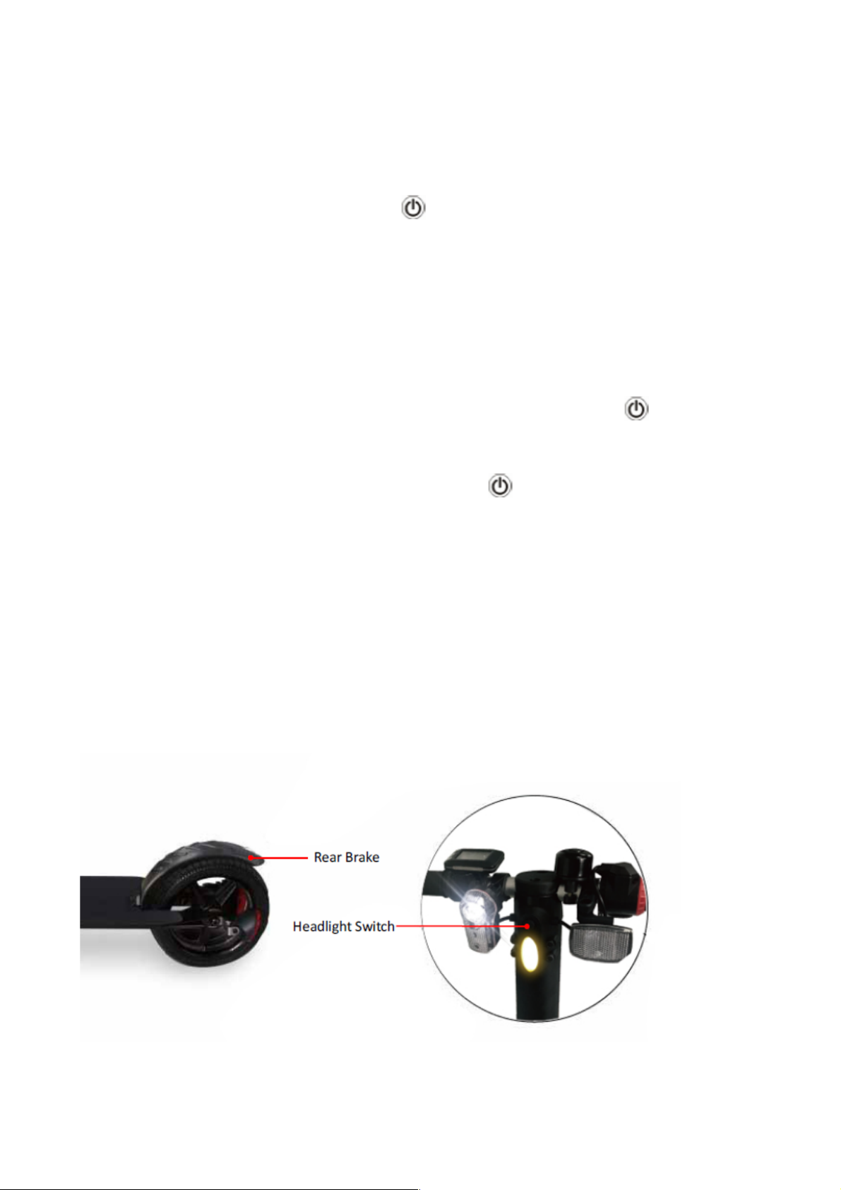 normalt och den elektriska bromsen fungerar inte. I detta fall ska den bakre bromsen användas för att stoppa den elektriska scootern.