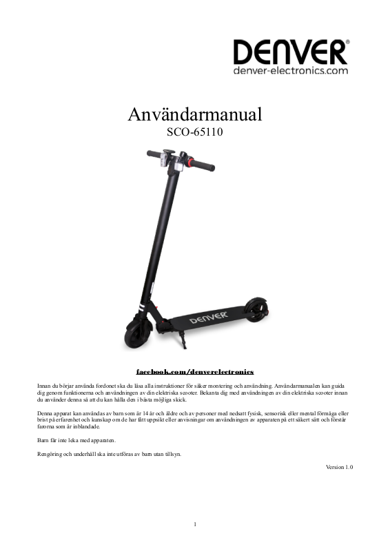 scootern är endast för hushållsbruk och får endast använda av en person som är minst 14 år med en maximal vikt på 100 kg. De andra