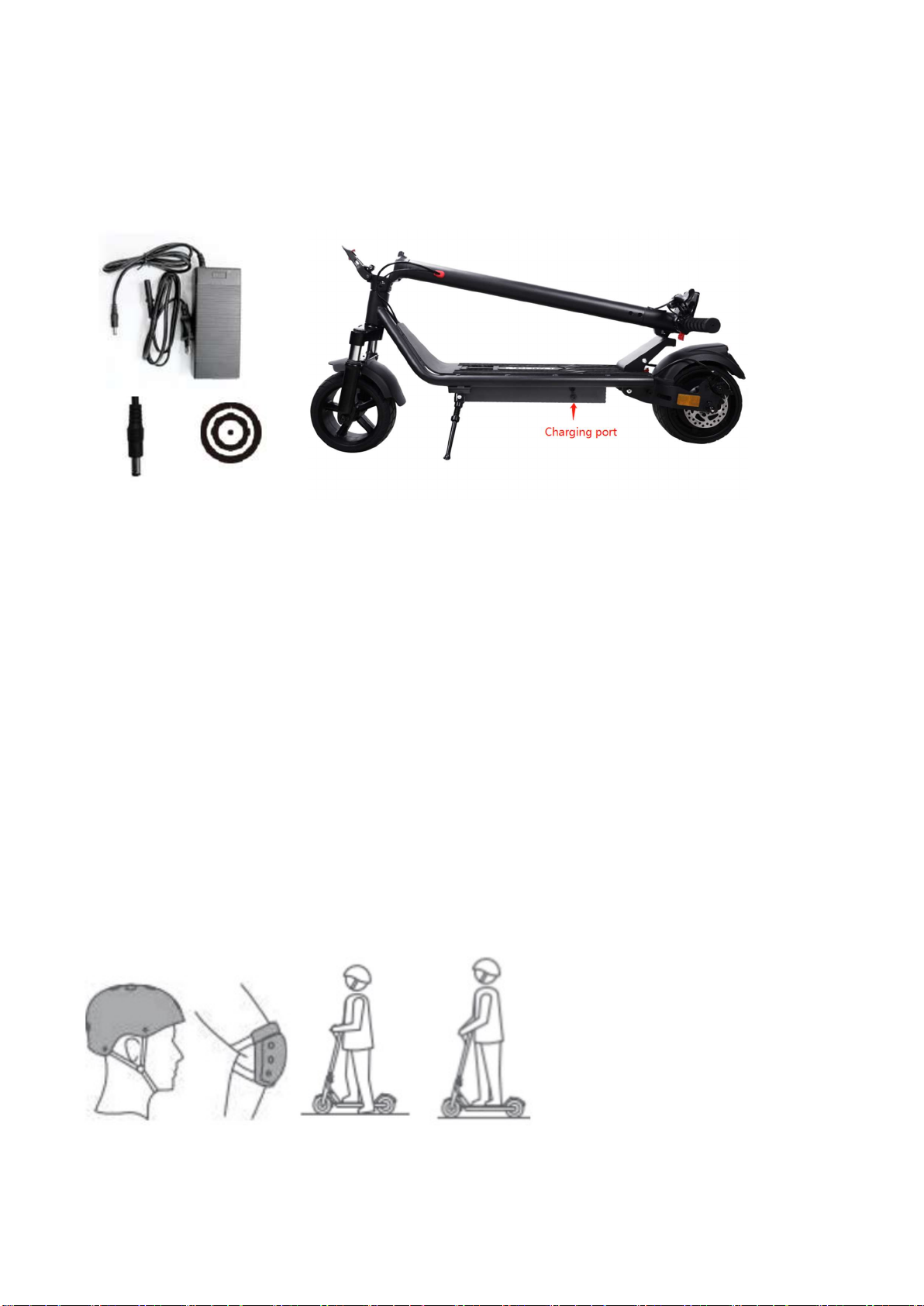 • Huomautus: Käytä AINOASTAAN mukana toimitettavaa laturia merkinnällä HLT-180I5462000 ja seuraavalla antovirralla tämän sähköpotkulaudan lataamiseen: 54,6 V – 2 A.