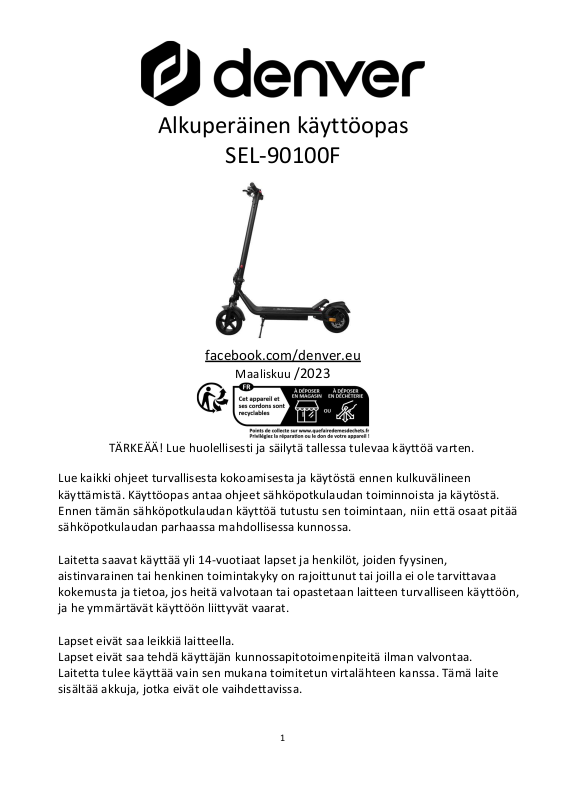 Kirjoita selaimeen osoite: www.denver.eu, jotta saat käyttöohjeiden sähköisen version.