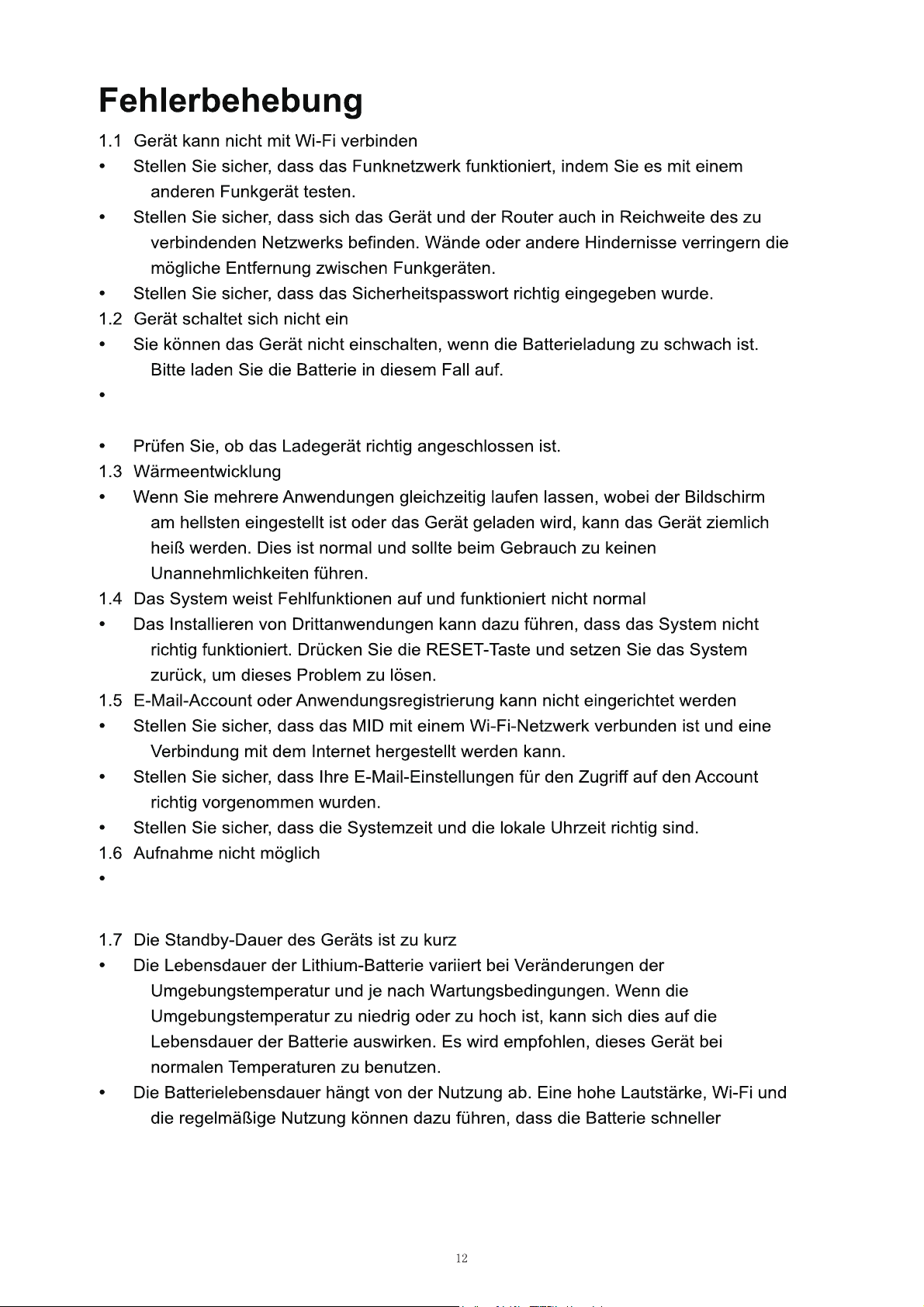 2. Dieser Tablet-PC ist mit einem Lithium-Akku ausgestattet, bitte beachten Sie die