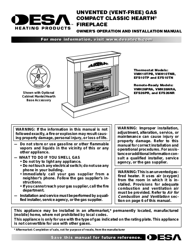 be obtained through authorized dealers of this product and/or DESA Heating Products who will provide original factory replacement parts. Failure