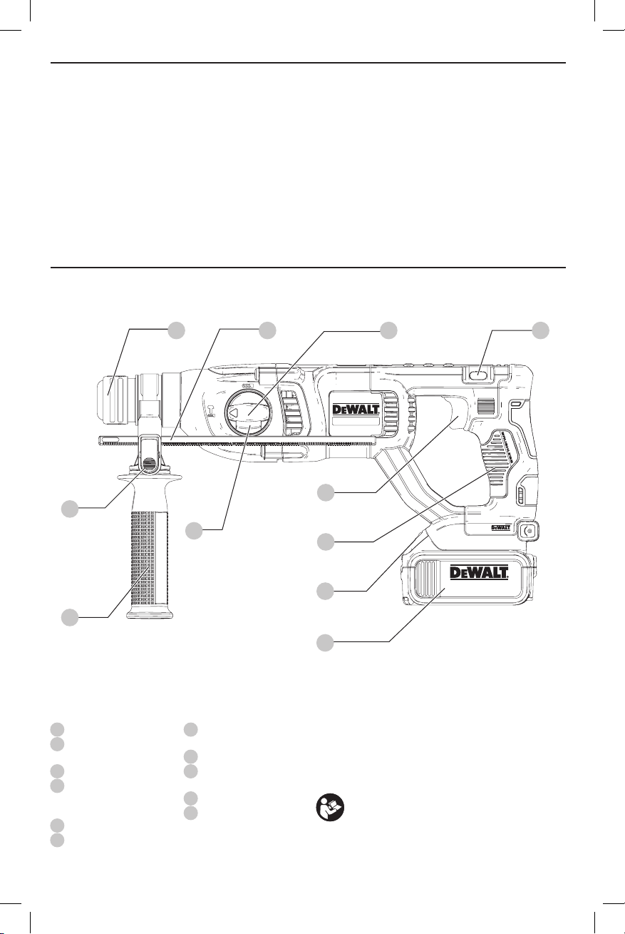 The following are trademarks for one or more DeWALT power tools: the yellow and black color scheme, the “D” shaped air
