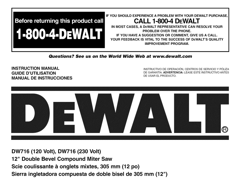 IF YOU SHOULD EXPERIENCE A PROBLEM WITH YOUR DEWALT PURCHASE
