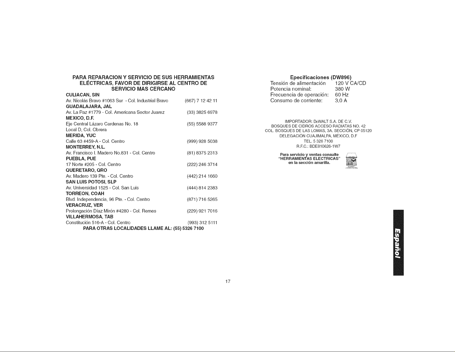 IMPORTADOR: DEWALT S.A. DE C.V.