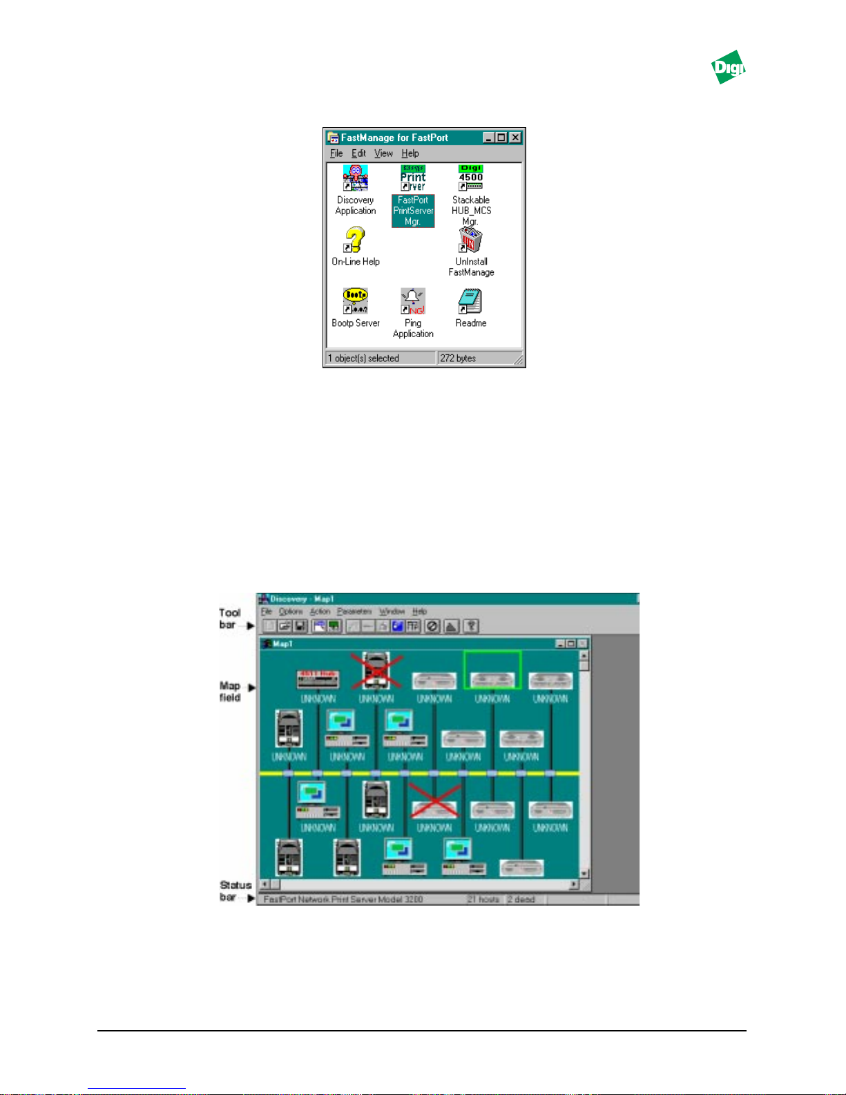 the FastPort PrintServer Mgr. (Figure 10-1) icon.