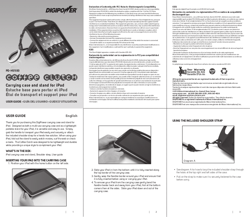 Merci d’avoir choisi cet étui de transport et support iPad de Digipower.