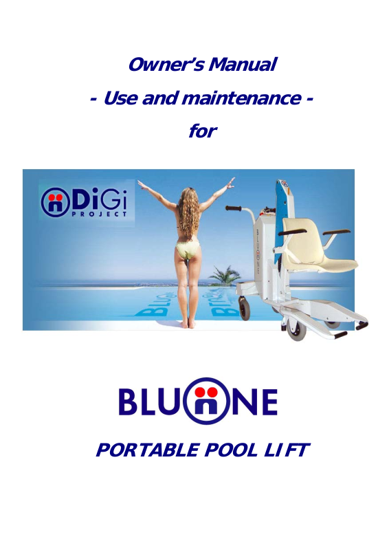 Important General information to become familiar with the BluOne portable pool lift. Details of the unit item and Serial Number together with important