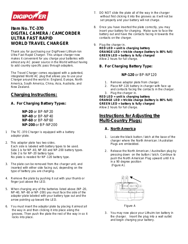 Thank you for purchasing our DigiPower Lithium-Ion
