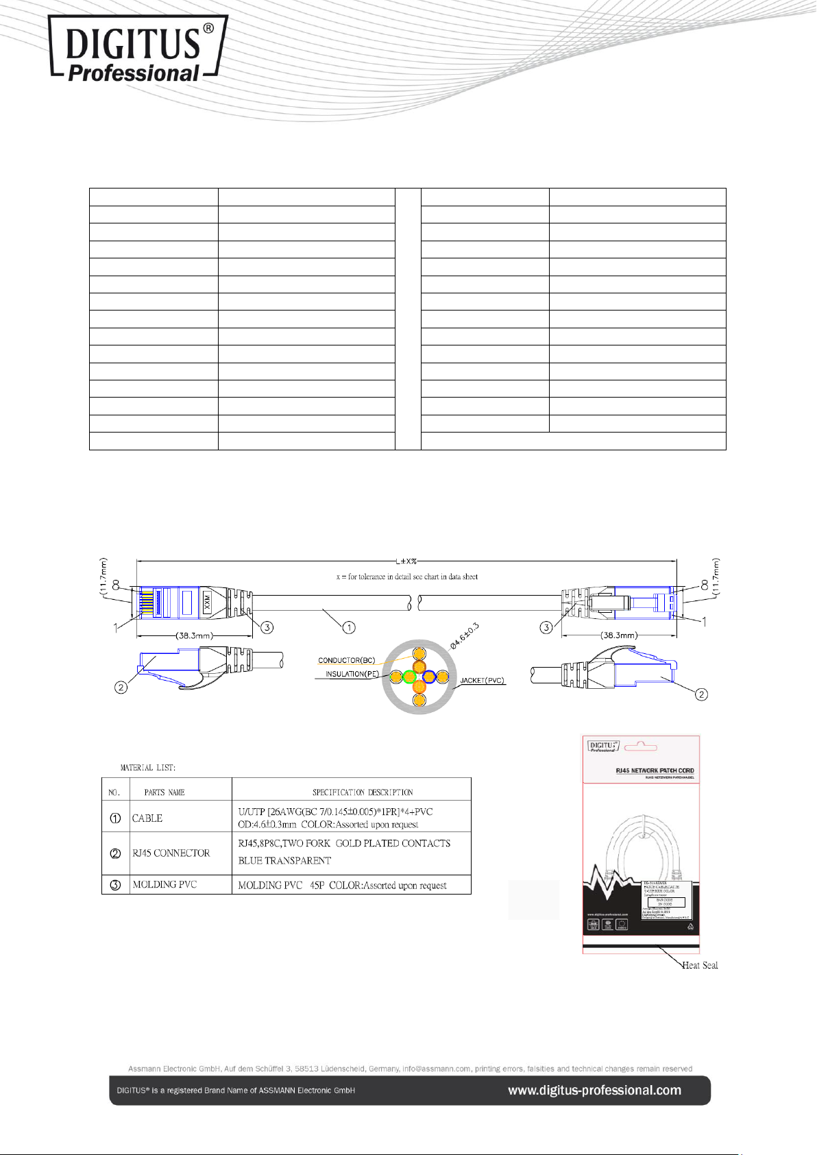 of DIGITUS® Category 5e cabling. The performance is tested up to 100 MHz inclusive performance