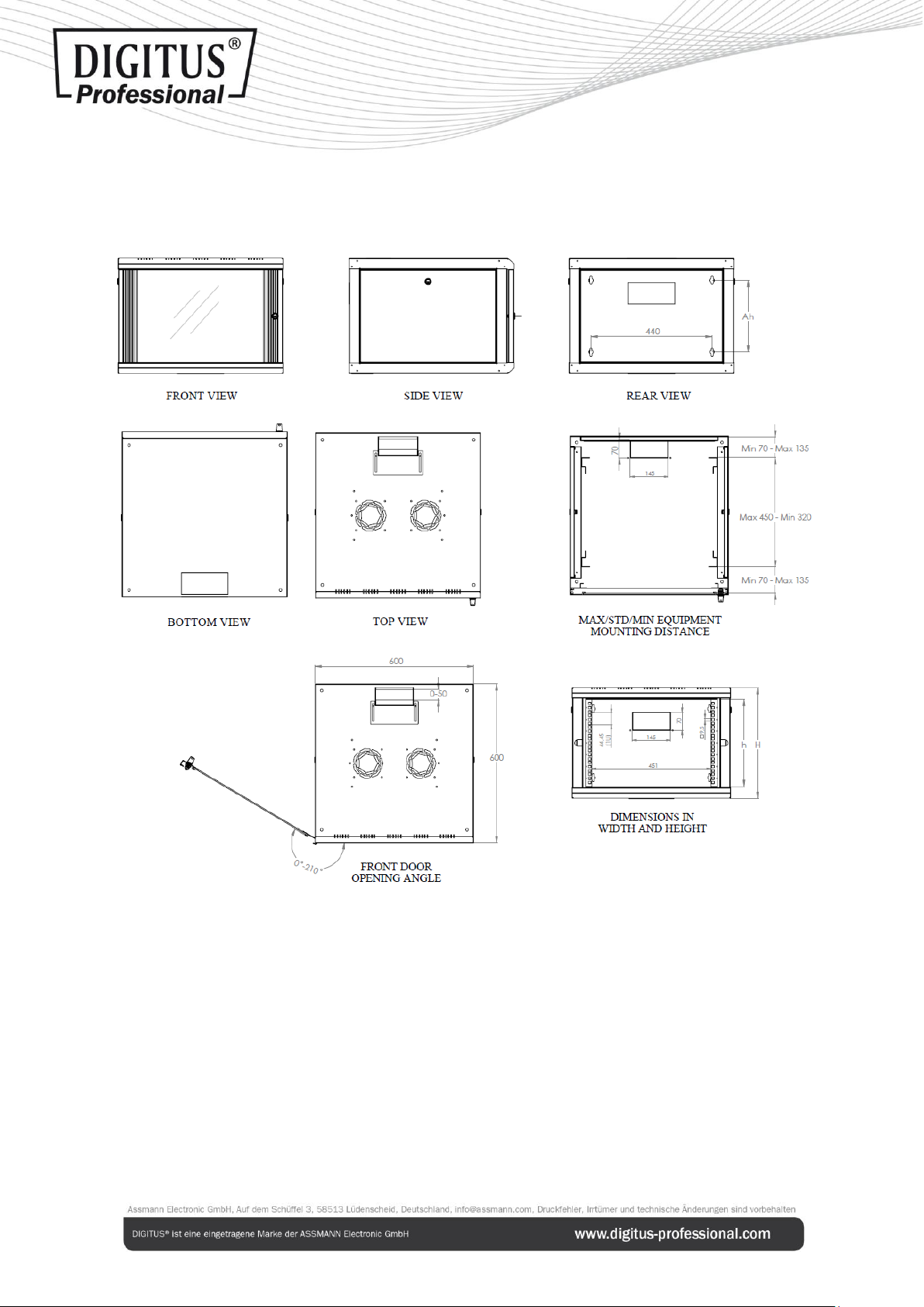 DIGITUS® 483 mm (19“) Wandgehäuse Unique Serie, 600 mm Breite - 450 mm, 600 mm Tiefe