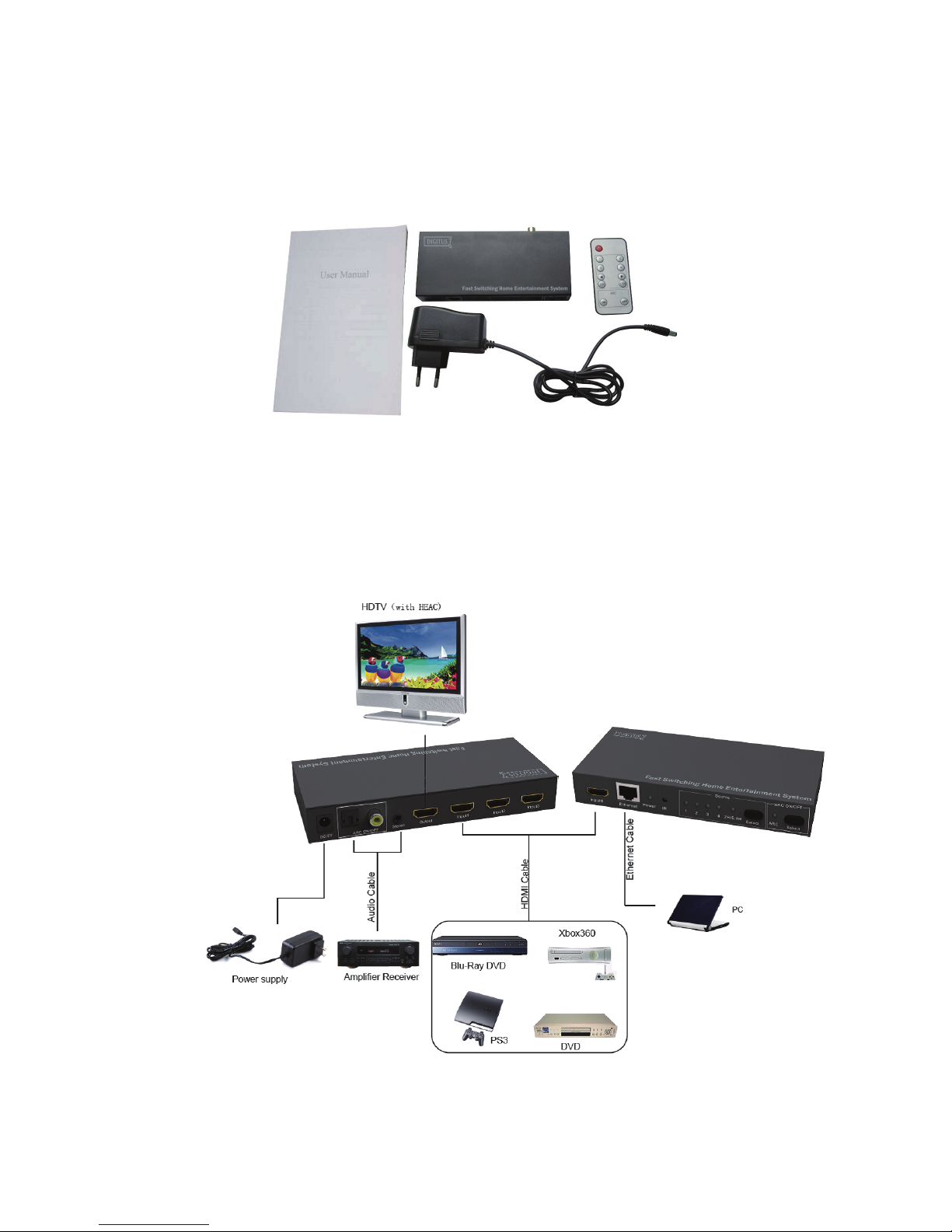 User’s manual, one Remote Control; other devices should be prepared:Hi-Def source,