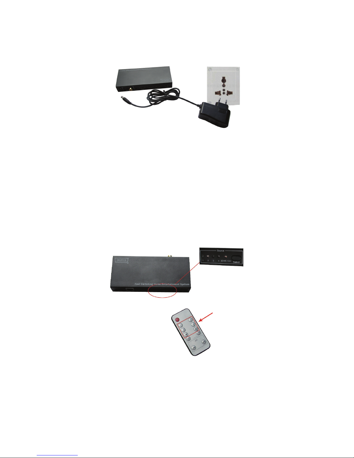 3. Insert the DC side of 5V power supply into the main unit and then connect the AC side