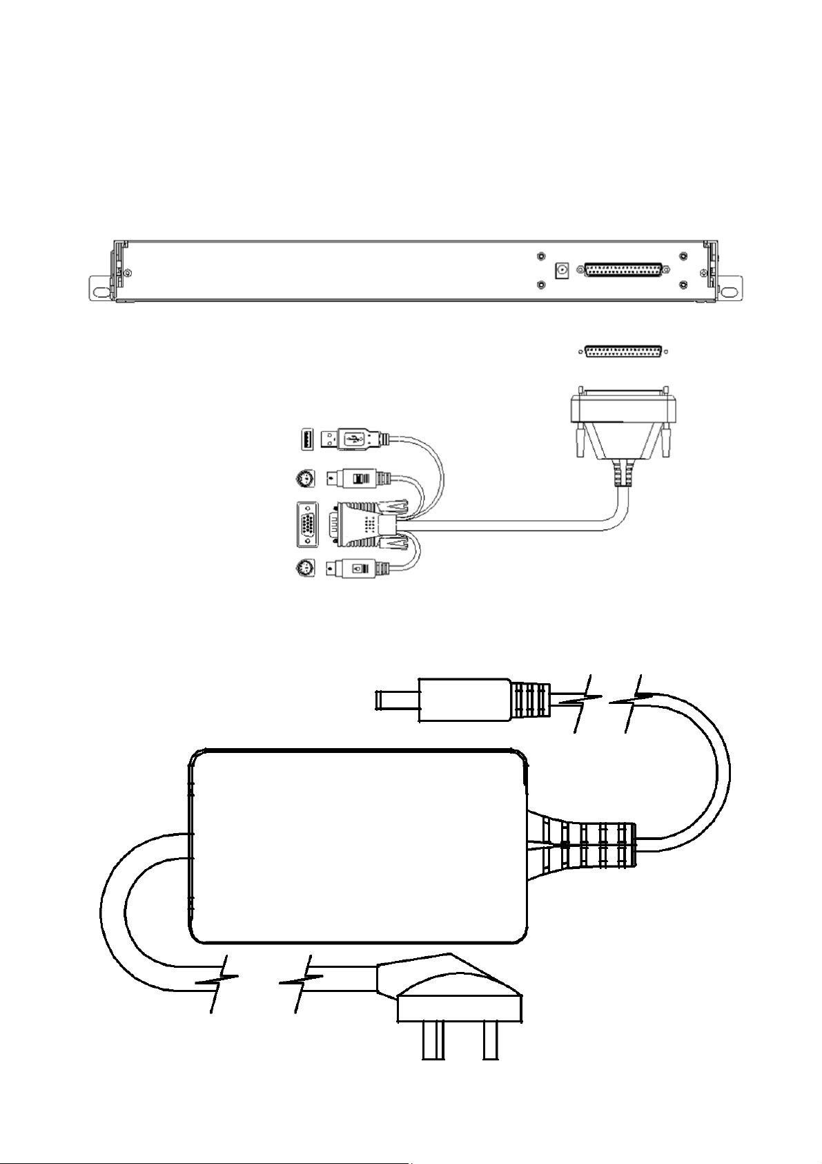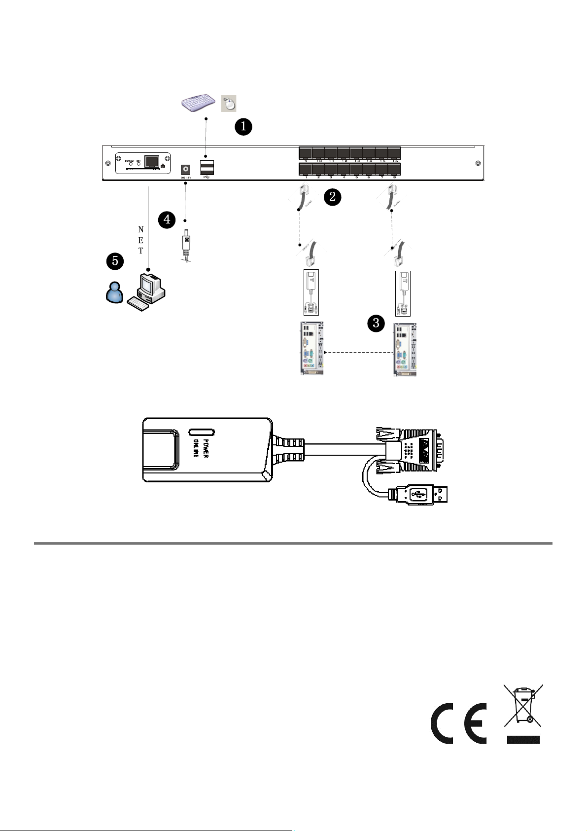2. Connect VGA and USB or PS/2 to a computer or a KVM switch