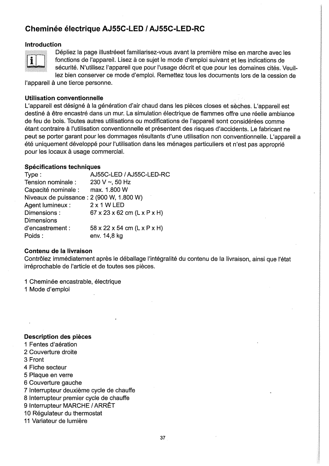Dimplex AJ55C-LED, AJ55C-LED-RC User Manual
