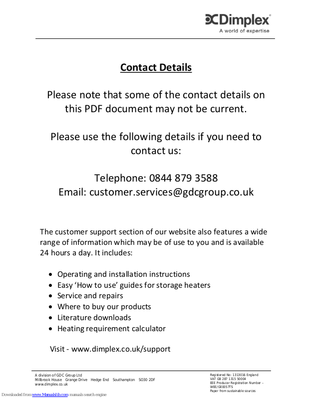 Dimplex Installation And Operating Instructions Manual