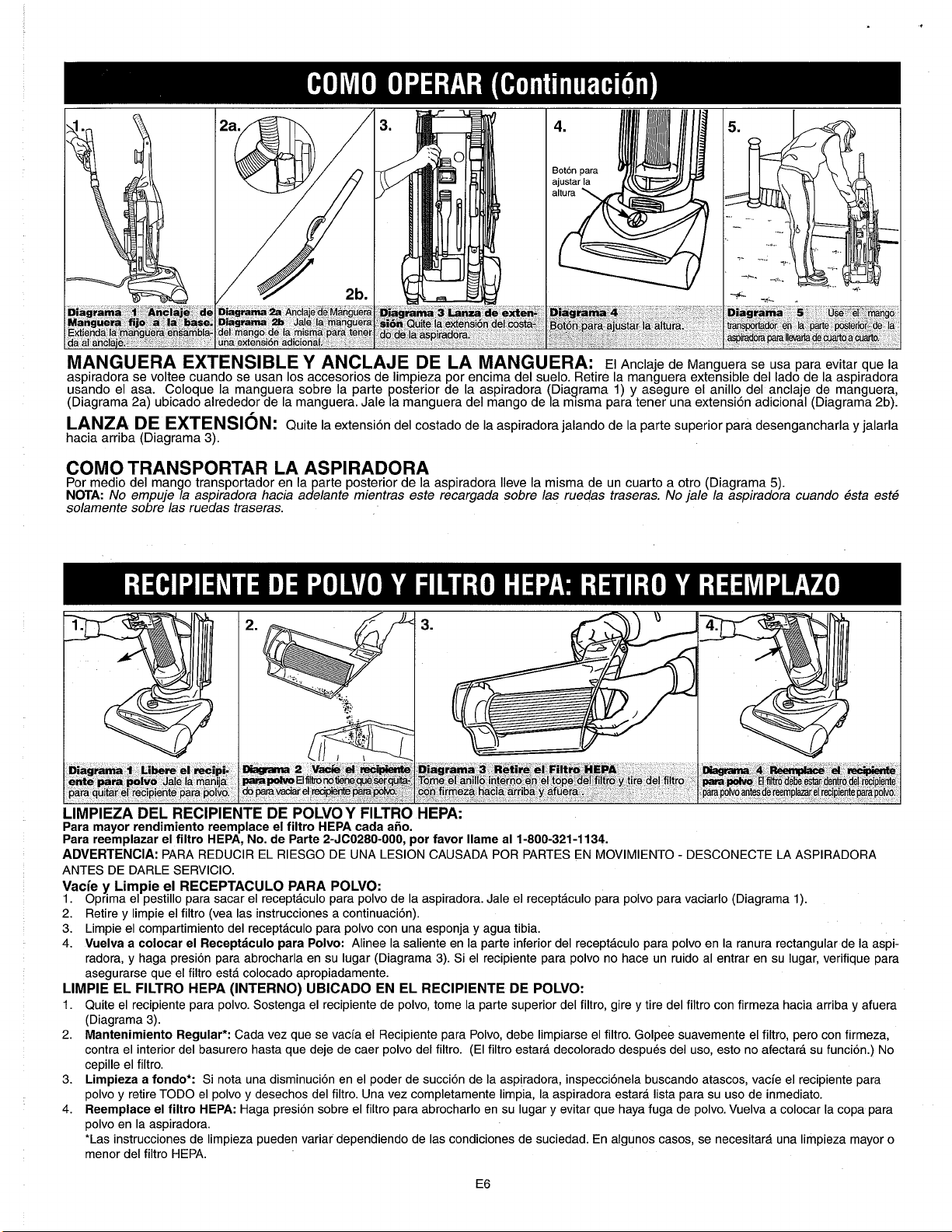 BRING CLEANER TO UPRIGHT POSITION WHEN USING THE HOSE AND ATTACHMENTS.
