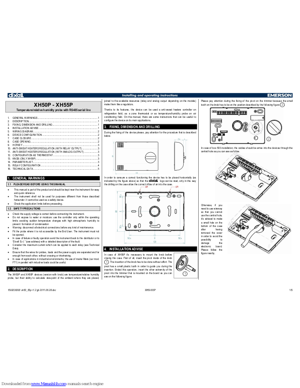 The XH50P and XH55P dev ices (version with knob) are temperature/relative humidity