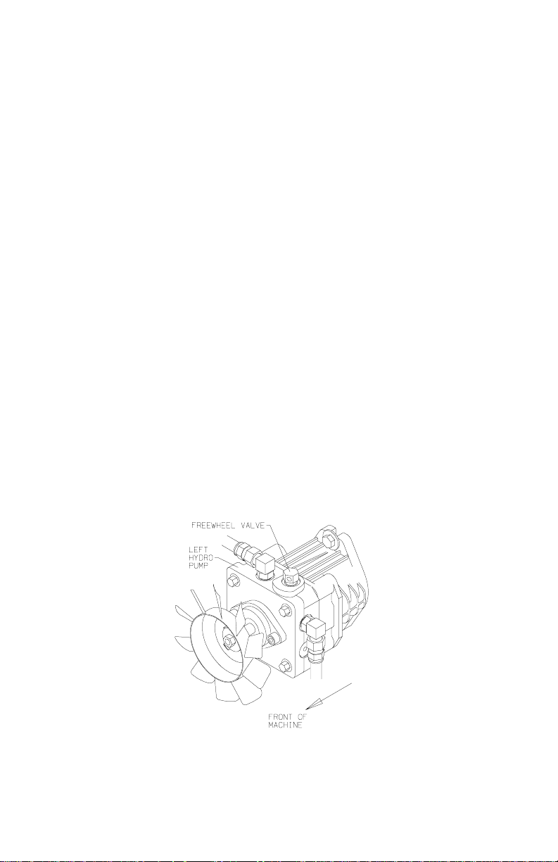 Drive belt broken or slipping- - - - - - - - - - - - - - - - - - - - - - - - replace drive belt Pump arm loose or disconnected- - - - - - - - - - - - - - - - - - - tighten or reconnect Hydraulic oil system low- - - - - - - - - - - - - - - - - - - - - - - - - - - - - - - - -add oil By-pass valves in free wheel position- - - - - - - - - - - - - - - -tighten by-pass valves Hydrostat oil filter plugged- - - - - - - - - - - - - - - - - - - - - - - - - - - - - replace filter Faulty pump or wheel motor - - - - - - - - - - - - - - - - - - - - - - - - - - -consult dealer