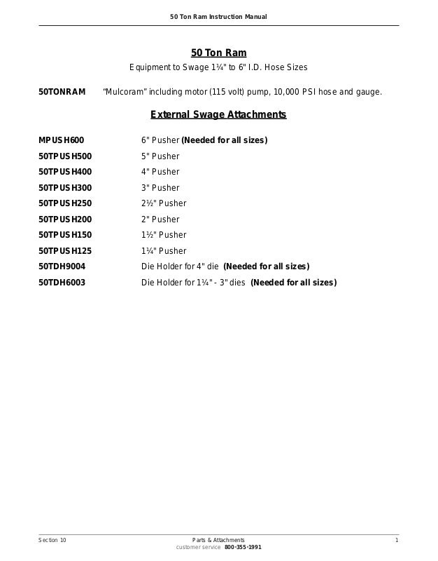 50TONRAM “Mulcoram” including motor (115 volt) pump, 10,000 PSI hose and gauge.