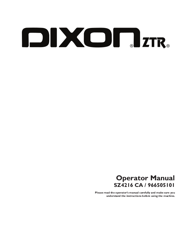 Dixon 115 338927R1, SZ4216 CA, 966505101 User Manual