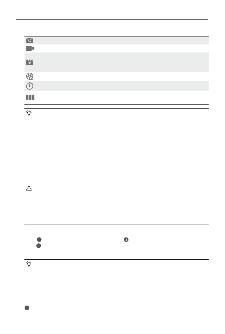 • Kardanupphängningsinställningar: tryck för att ställa in kardanupphängningsläge, utföra