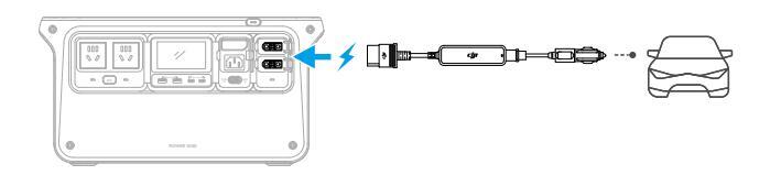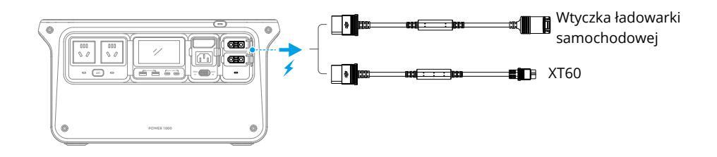 Za pomocą tego przewodu stacja zasilająca może ładować urządzenia zasilane z samochodu, takie jak lodówka samochodowa.