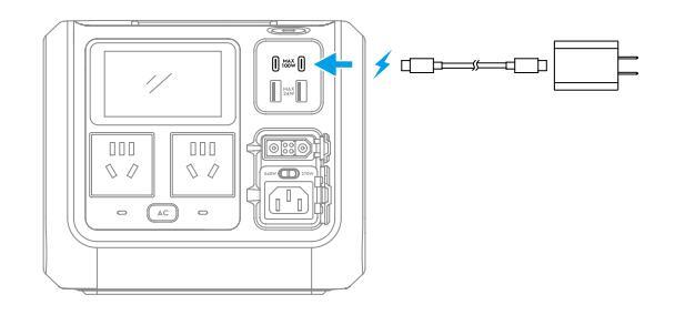 DJI Power 500 można ładować za pomocą ładowarki USB Power Delivery podłączonej do portu USB-C o maksymalnej mocy ładowania 100 W. Obsługuje także jednoczesne zasilanie ładowania z dwóch portów USB-C o maksymalnej mocy 200 W.