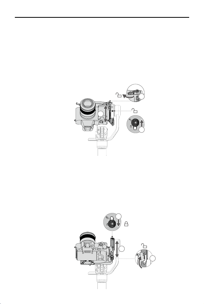 dolną płytkę szybkiego zwalniania, a następnie dokręć czerwoną dźwignię ②.