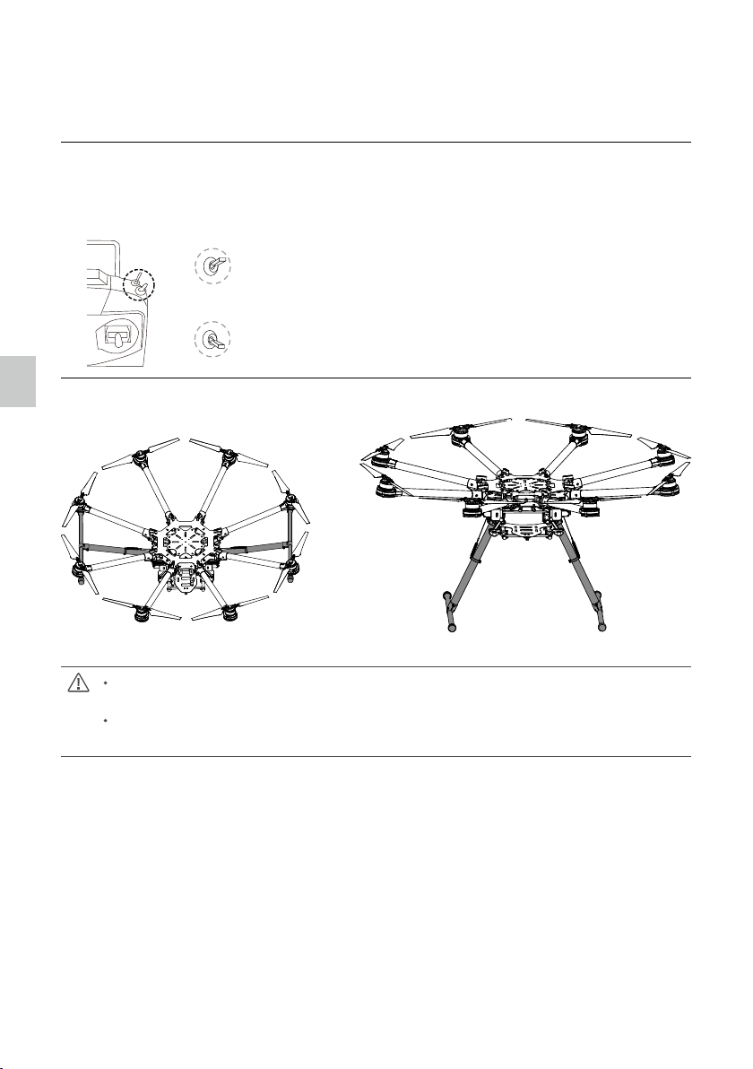 4. Ensure propellers and motors are installed correctly and propellers are unfolded before ying.