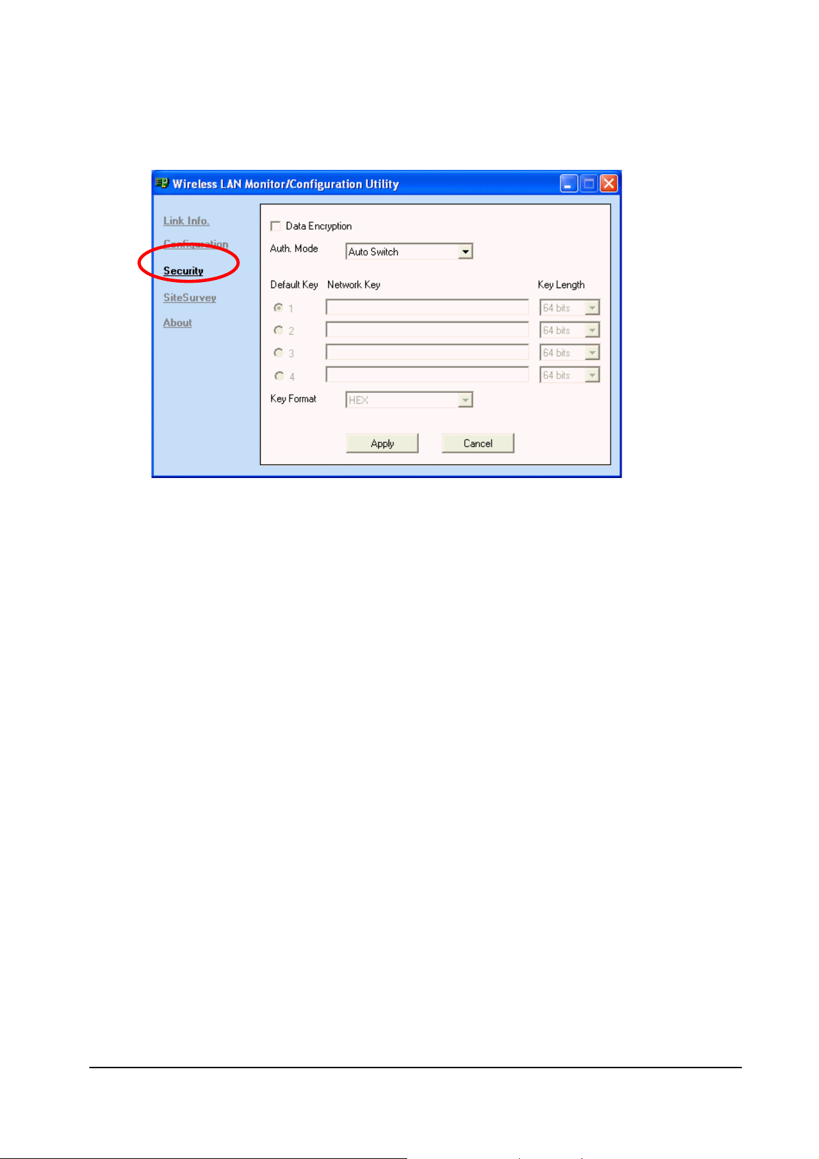 This is the page where you configure Security settings of your 22Mbps wireless PCI Adapter.