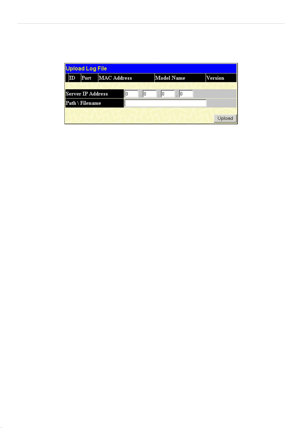 The following window is used to upload log files from SIM member switches to a specified PC. To view this window click