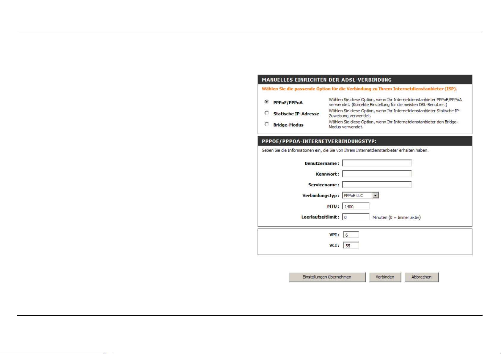 Den Verbindungstyp ändern Sie auf PPPoA LLC.